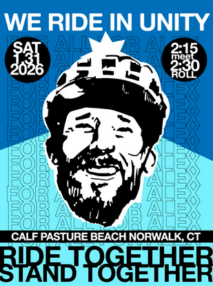 An Instagram post with the headline “We Ride In Unity” provides the details of the bike ride which will begin at Calf Pasture beach in Norwalk at 2:15 pm and will head toward Compo Beach. Details from the post, “The Ride for Alex” say that this is happening Saturday, January 31st. Post continues, “Looks like there will be over 100 rides in the US. It will be a defining moment in US bike culture and the resistance movement in the US. Bikes are tools for many things but at their core they are anti-fascist. Riding a bike connects people to their communities and each other. “