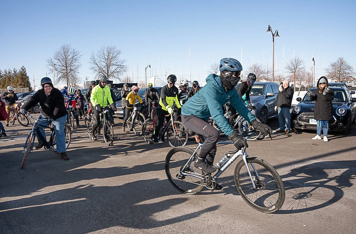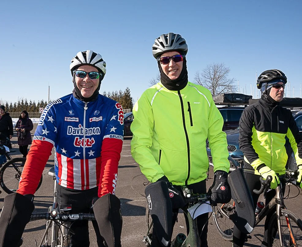 After pausing at Compo Beach, they returned to Calf Pasture, again crossing the Steinkraus bridge. Ride organizer Burton Avery described the sub-freezing, 27º weather with light wind and full sun as “perfect” for a bike ride. If you say so, Burton!
