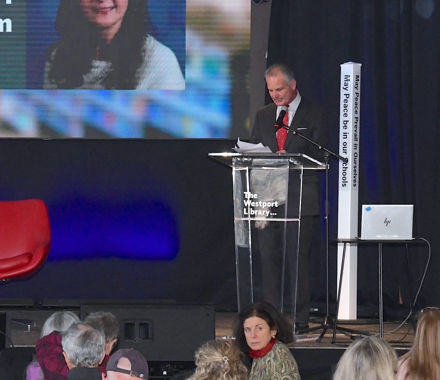 Opening for Mr. Christie was Board of Education member Abby Tolan who was filling in for Board Chair Lee Goldstein who was out of town at a previously schedule conference. Ms. Tolan had a full plate of both achievements of the Westport Education system and it’s outstanding student body and important administrative issues addressed in recent years. Tolan commented, “First and foremost, our district remains dedicated to providing a safe and welcoming environment that both supports and challenges all students.”
