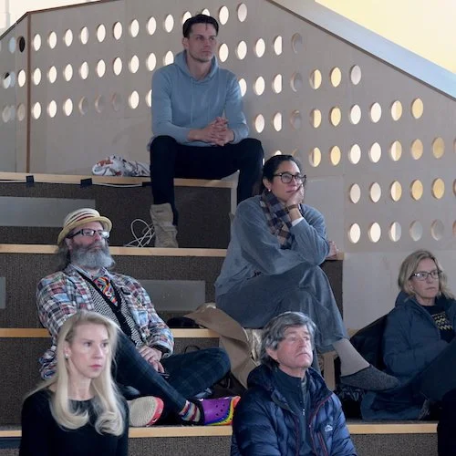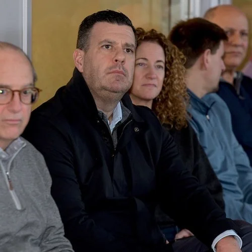 Above, clock wise: Audience members included Westport Police Chief David Farrell, RTM member Andrew Collabella (blue hoodie), former RTM member Harris Faulk (hat), newly elected RTM member Victoria Wylie (white) and two other audience members.