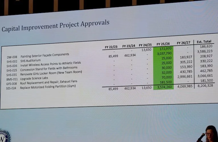 Ms. Tolan spoke at length about budgetary issues, including capital improvement plans including substantial Staples Auditorium renovation and other projects including a new Staples girls locker room, WiFi access at Staples athletic fields and a new concession stand with bathrooms.