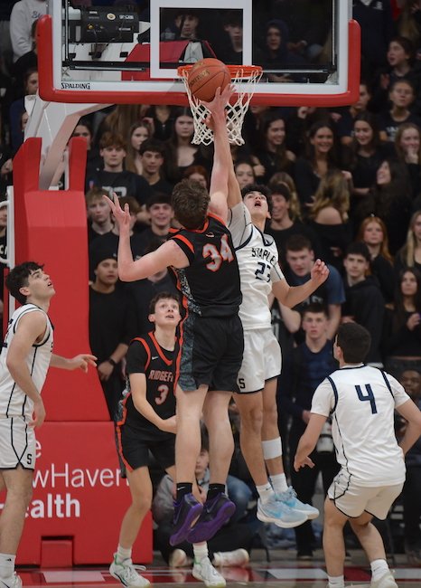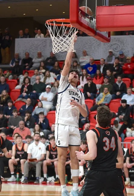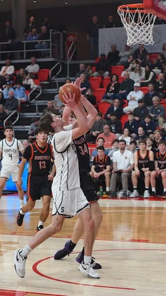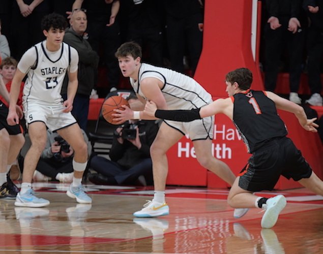 In the fourth quarter, the scoring continued for both teams, but at a higher rate for the Westhill Vikings. Westhill senior Dalton Olechnowich connected on a three-pointer in front of his own bench to cut the game to 58-52. That is the closest that it would get however, as Clachko and Tobias responded quickly, each with a much-needed layup. Westhill found themselves running out of time and put on a full-court press, which was well combated by Clachko and junior guard Austin Heyer (6 pounds). Weshill then found themselves having to play the foul game late, which resulted in a final score of Staples 68 Westhill 55.