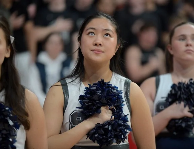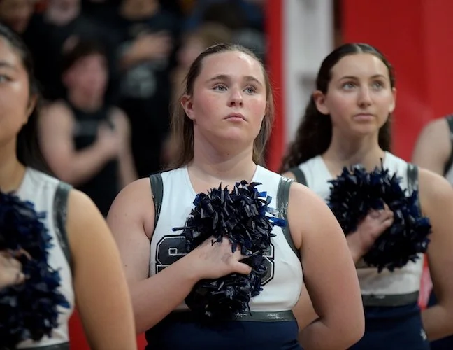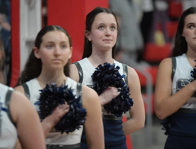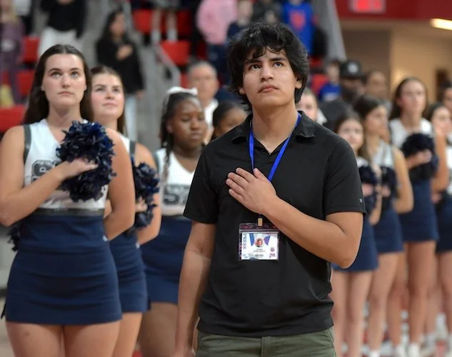 The Westhill Vikings stand and face the Flag during the singing of the National Anthem.
