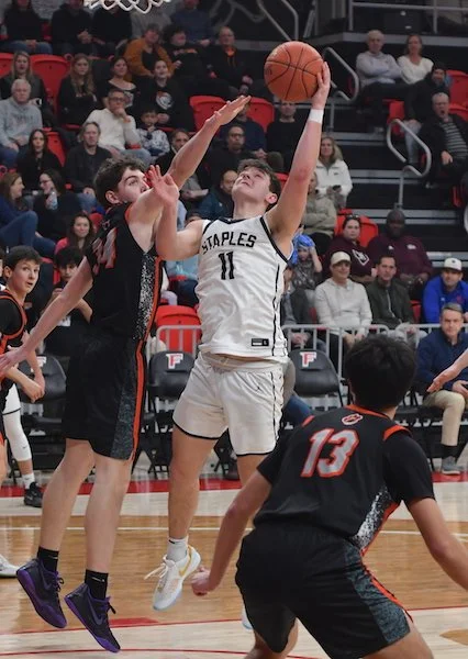 On Saturday Staples Basketball scored two wins in the FCIAC tournament opening round, with Freya Harvey and Addie Talbott leading the girls with 11 points each in their 52-36 win.