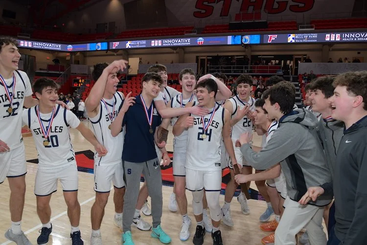 Staples would not look back, capping of a 62-48 win to be the first FCIAC boys basketball team to repeat as FCIAC champions since Ridgefield, who won 4 in a row from 2019 to 2022. The Staples season is not over, as they now shift their focus to the division 1 state tournament as the #1 seed, squaring off against #16 Manchester on March 10 at 6:00 PM at Staples High School.