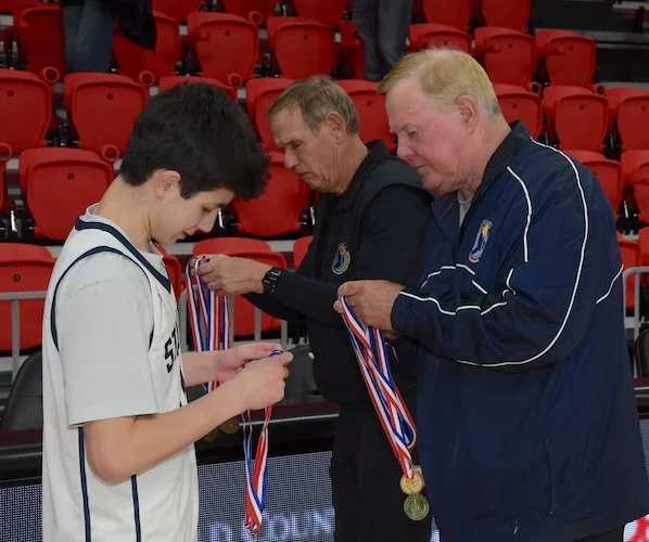 Starting Five with Their Medals & Plaques: Dhilan Lowman, Sam Clachko, Mason Tobias, Austin Heyer, Matty Corrigan