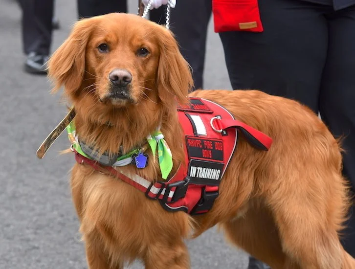 Above left, Billie Frenz of the very popular band Bille & The Showmen cruises down the Avenue in his 2016 Cobra, custom built by Backdraft Racing of South Africa with a Ford 351 CID Windsor and 5 speed transmission along with the procession of fine vintage automobiles. Four term Greenwich First Selectman Fred Camillo acknowledges friends in the crowd as he strolls with his German Shepherd.