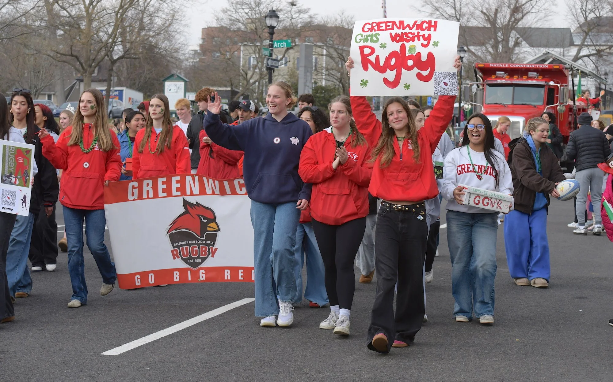 Greenwich Girls Varsity Rugby team marches proudly. Led by Head Coach Erin Martschenko, GGVR won a state title in 2022.