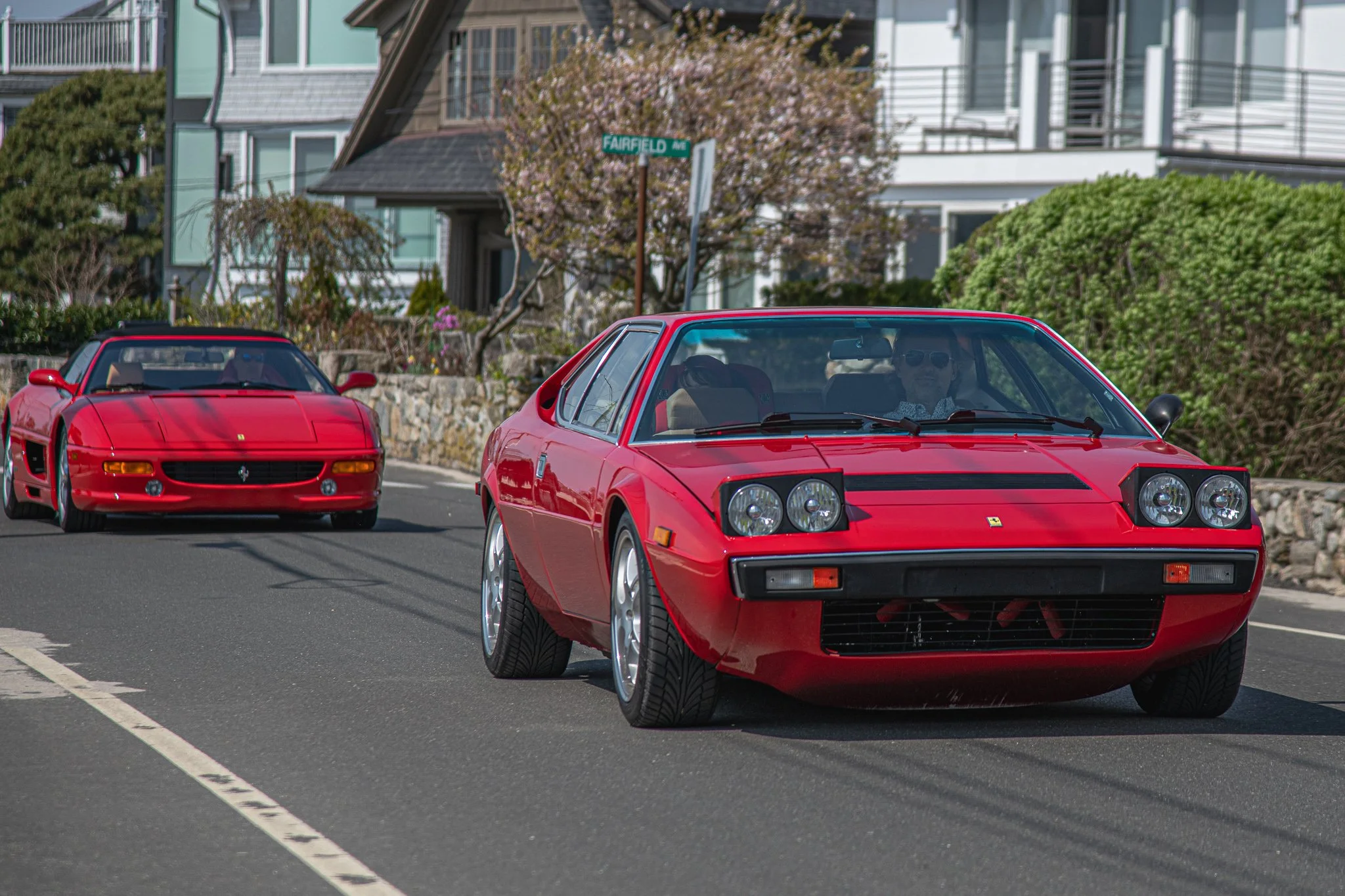 A pair of red vintage Ferraris gave some power to Soundview this afternoon as they toured the shoreline with a Sunday drive. WestportLocal.com photo