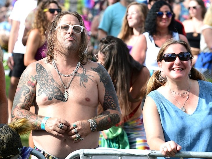 There was a veritable art gallery of tattoos of every size and subject, many paying homage to The Grateful Dead the legendary jam band. The clothing was as varied as the body art.
